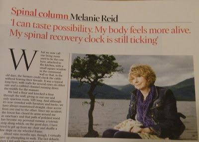 And though her life was shattered that day, she has shared her high and lows ever since in her now infamous weekly Spinal Column. Her unremitting honesty has made me smile, weep, groan, commiserate, coil back in horror or hit the air with my fists... and yet I have never experienced pity.