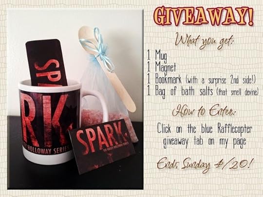 New giveaway! This one will run for a little while. This one is about reviews. So give Spark a review on the website you bought it from and send me the link. (There's a place for this in the rafflecopter giveaway)