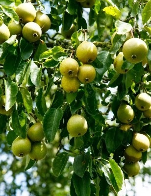 The only fruit trees remaining are two pear trees. One is dwarfed—I think because my son shot an arrow through it when it was still quite young. The other is leafy and laden with fruit come late summer, but the pears are small, misshapen, and marked with black dimples.