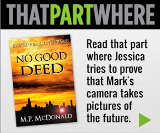 I asked for help from my readers about what scenes, besides the opening one would be most likely to grab a reader. I had several suggestions for the opening scene where Mark saves the baby from drowning in the bathtub, which makes me glad that it was the scene that hooked so many of my readers, but I decided on two that a reader couldn't find anywhere else except by buying the book. One scene is with Jessie and Jim, the other with Mark and Bill.