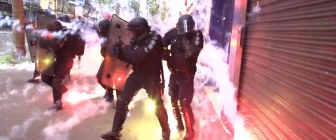 Heavy clashes erupt at May Day demonstrations in Paris ahead of a historic election that will see the neoliberal Macron square off against the neo-fascist Le Pen.