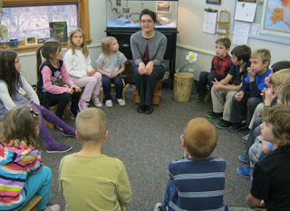 I talked about how a little witch pushed her way into my Pied Piper story. And then I demonstrated my writing and revision process, using Page One of a new story as an example. Lots more great questions from the students in grades 3 through 6.