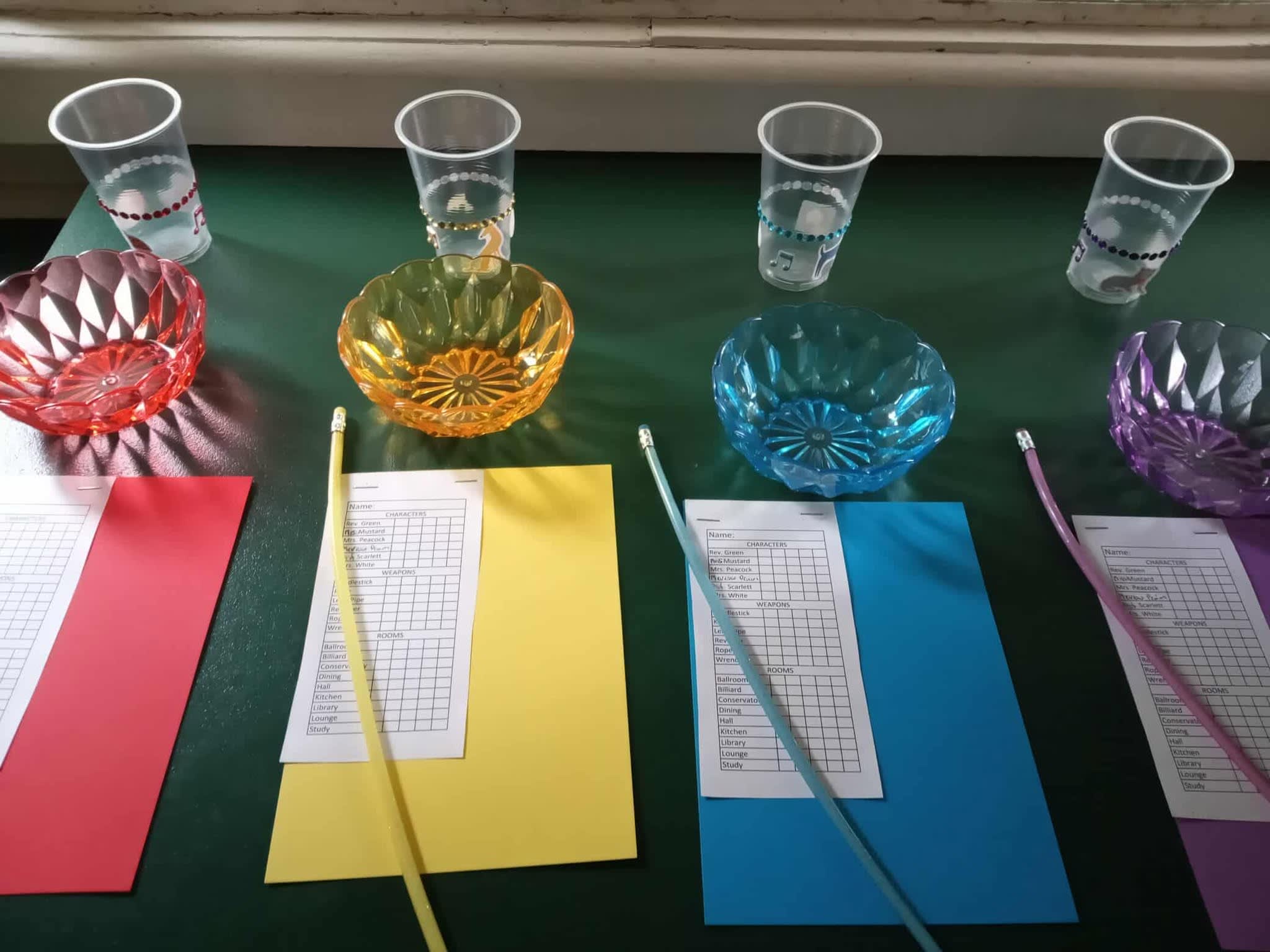 Each player had their own colour-coded cup, snack bowl, bendy pencil, and note sheet (luckily we picked characters of the exact colours I had bowls for!)