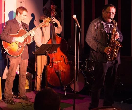 We took him from the airport to Magnolia Cafe and he began asking me questions about being blackballed from performing. The more I told him, the more outraged and dumbfounded he became, which was a little shocking to me because I had no idea he would become so outraged and care so much, always seeing the larger philosophical implications of everything. He actually cared more about me than I did, and pointed out that the jewish ethnic activists were doing a lot more than just harassing me, they are actually terrorizing the entire community by threatening everyone, forbidding them from hiring me, talking to me, or even being my FB friend. This changed my whole perception of things, and made me angry too. I didn’t think it was such a big deal when I though they were bothering only me, but when I realized they are holding the entire town hostage, I had to agree that this behavior is unacceptable. Gilad seemed most upset that another jazz artist was silenced, and and reminded me that this kind of suppression of free speech is a crime against humanity. It can be hard to see the full significance of something you are at the center of. Luckily, jazz players are ready for anything, so he was unfazed to learn that even the drummer and bass player I had lined up to play with us had backed out two days before the performance, saying there was “too much negativity surrounding the event,” and I had to agree with them, except that the source of the negativity was not me. I have played hundreds of duo gigs, and am actually quite fond of the configuration, even though it is much more work to play all the bass lines, provide groove, rhythmic interest, harmonic color, and to provide the melodicist with responses while he is stopping to take a breath between phrases, all the while trying not to clash of get in the way. It sounds more complicated than it is, though. Your ear tells you what to play, and it really doesn’t require as much thought after awhile.