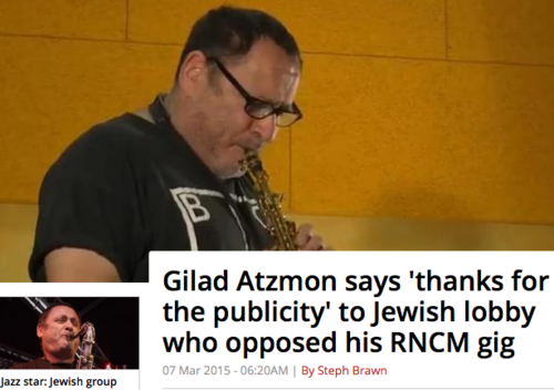 Jazz saxophonist Gilad Atzmon has thanked a Jewish lobby for the publicity surrounding his cancelled gig at the Royal Northern College of Music.