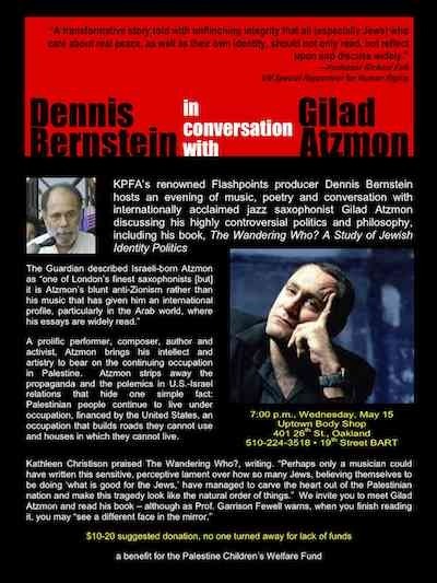 Wednesday, May 15 7pm “Dennis Bernstein in conversation with Gilad Atzmon” event at Uptown Body Shop 401 26th St. Oakland 19th St. BART