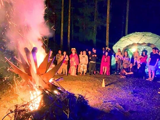 Preparing for Turtle Burn in 2019, attendees construct a communal dome space.