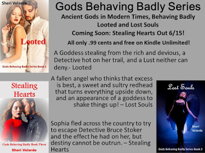 Today I welcome Guest Blogger the FABULOUS Sheri Velarde with the newest and next release in her ongoing series, GODS BEHAVING BADLY. Don't miss this fun and sexy new story!