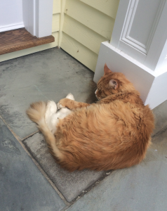 Our neighbor’s cat, Stitch, was a fixture on our street for a dozen years. He’s been in everyone’s home from time to time–sometimes invited, other times not. As he aged, he became rather bold, lying in the middle of the road or driveway and refusing to budge for cars. Love him or not, no one would deny that he was a bit of an old soul and a vagabond (often being spotted a mile or further away from our street).
