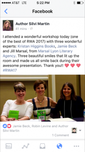 Post from someone who attended a workshop I gave with Kristan Higgins and my agent, Jill Marsal.