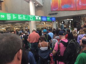 Security line at the airport.