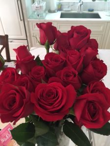 “Welcome Home” roses from hubby!