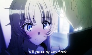What about Julius and Stella? Well, lets take a look at how these episodes end. By the end of episode one in Asterisk Wars, Julius is still a bitchy tsundere with standoffish personality. On the other hand, Stella and Ikki actually become friends. In other words, Julius is more tsun, while Stella is more dere. I feel like, as a main love interest and character, Stella has beaten Julius out. Not only are her reactions cute, but she's also a lot nicer, and we don't have to watch her as she abuses the main protagonist constantly over perceived "faults." Granted, she still has her moments, but those have more to do with embarrassment than, "I'll kill you, pervert!"