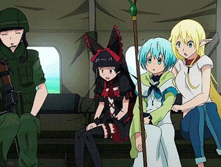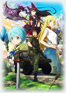 GATE: The JDSF Fought There is probably the most interesting anime I've seen in a while. The basic concept is this: A large gate appears in Japan, from which numerous warriors and fantasy creatures pour forth, invading our world and wreaking havoc on Tokyo. Through it all, one middle-aged Otaku nut, who just so happens to be in the military, is caught up in this battle and, through a lot of unfortunate mishaps, ends up becoming a hero. He and several other members of the JDSF are then sent through the gate to investigate the other side, where they come upon a fantasy world straight out of Lord of the Rings.