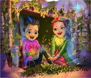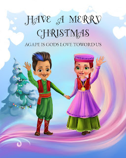 A Christmas illustration of two children: A Femich Christmas illustrated book page