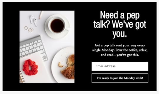 Here’s a sample image of my sign-up form for the Monday Club in the footer of my website!