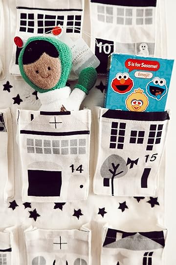 I bought this Advent calendar at Crate and Barrel. It was a little more than I would typically spend on an Advent, but the goal is that we will use it for years to come. This calendar allows us to fill the pockets with parts of the Christmas Story and little trinkets all season long.