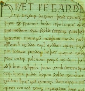 The shaper is a blind man, a poet and minstrel, who sings songs of heroism to bolster the courage of Hrothgar’s men. Grendel is himself both fascinated and enraged by the shaper, and near the end of the song, when things really pick up, Grendel speaks in his own voice: