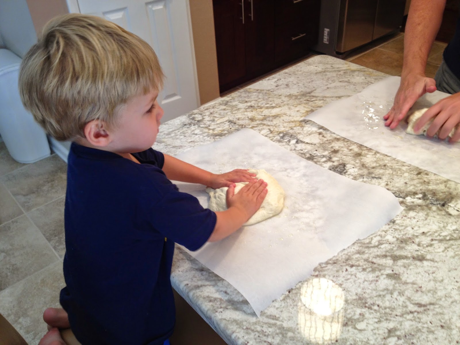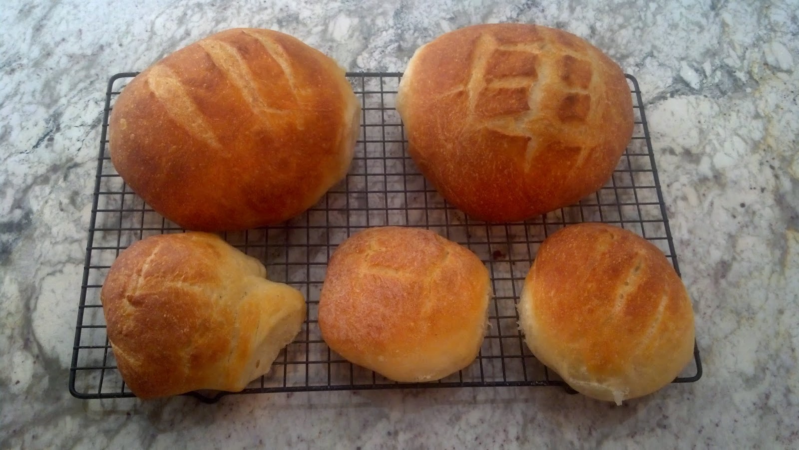 The finished loaves. We both need to work on shaping and scoringOverall, a fun project, and one that produces tasty bread. I achieved a few larger holes in the crumb, but the important thing is that my little boy and I did this thing together. We'll see if he picks up the bread bug.