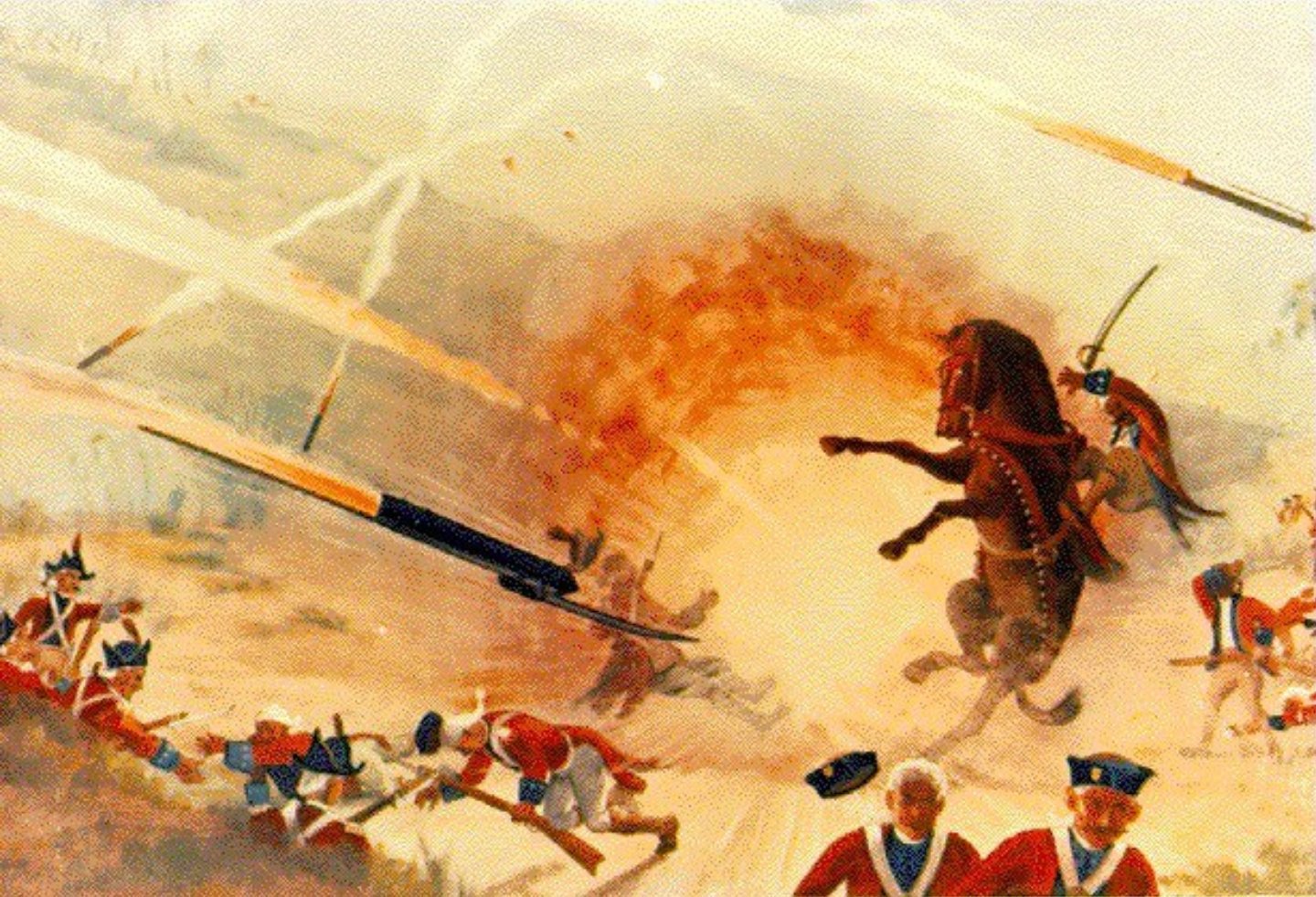 ப்ரிட்டிஷ் படைகளின் மீது வந்து விழுந்த ராக்கெட்கள் யாவும் பெருத்த ஓசையுடன் வெடித்தன. இது அவர்களின் குதிரைப் படைகளை சிதறி மிரண்டோடச் செய்தன.