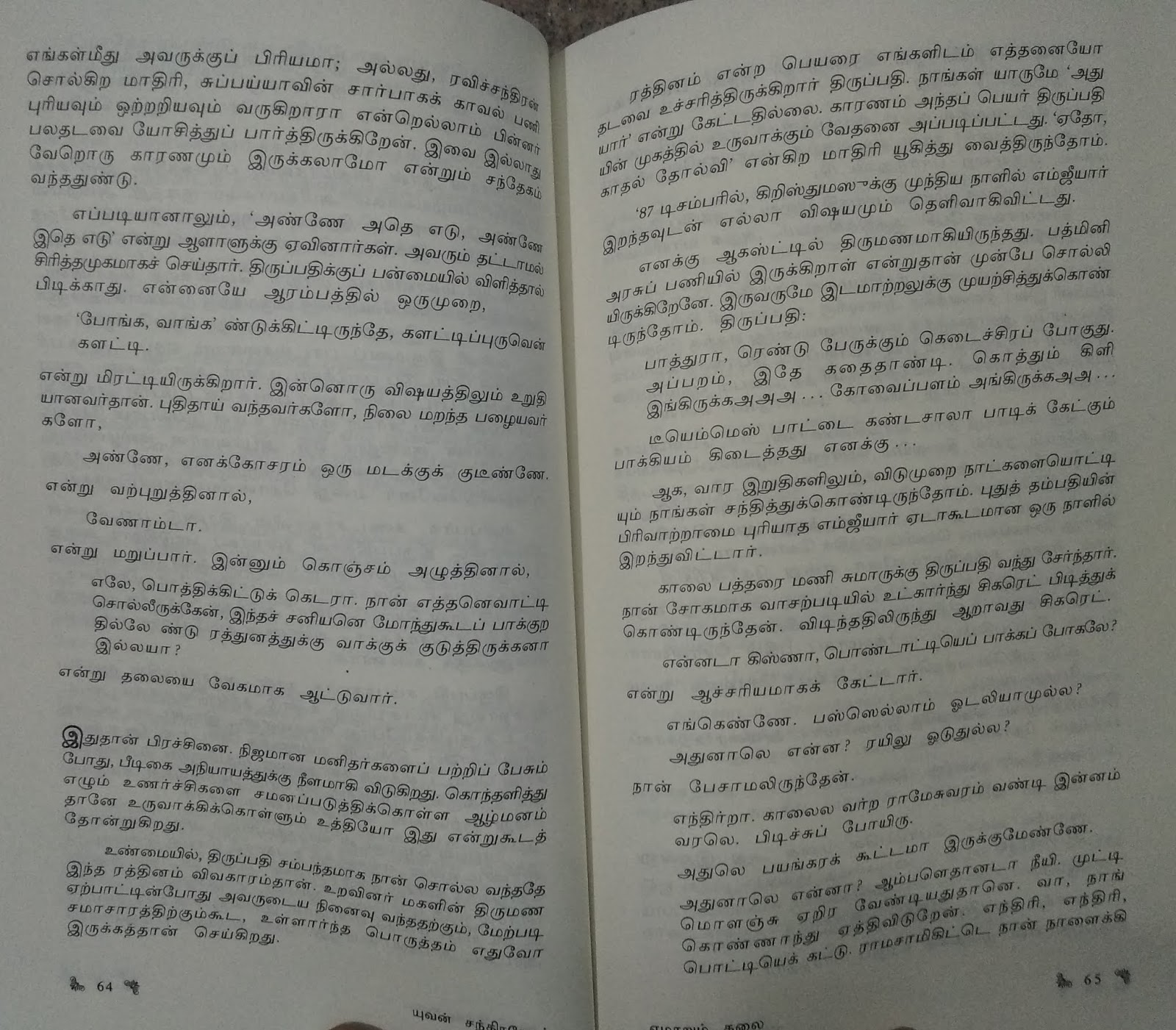 ‘96' படத்தில் இளையராஜாவின் பாடல்களைப் பயன்படுத்தியது போல் இப்புத்தகத்தில்* மனுஷ்ய புத்திரன் கவிதைகளை ஆங்காங்கே பயன்படுத்தியிருக்க முடியும். ஆனால் உள்ளடக்க ஆற்றொழுக்கு குலைந்து விடக்கூடாதென்பதற்காக தனியே தருகிறேன்.