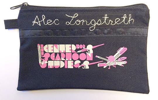 I'm packing my newly-redesigned bag and hopping on a red-eye tonight to head back to The Center for Cartoon Studies for another 10 days of teaching in Vermont. Last time I was there I bought one of their Joe Lambert-designed pencil cases, which Claire hand-embroidered for me, so it won't get confused with any other similar pencil cases that are floating around.