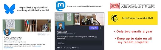 For social media updates about my projects I'm going to keep posting on BlueSky and Mastodon for now. If you're not on either of those platforms, you can also just sign up for the Phase Seven Comics Newsletter, which goes out twice a year with a recap of my recent projects.