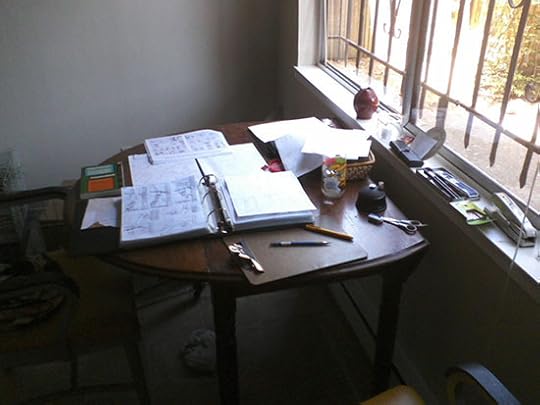 Penciling Isle of Elsi - I finally finished the fourth (and FINAL!) draft of my first big Isle of Elsi story. In the photo above, you can see our kitchen table, which I took over while finishing up the script. I got some great feedback on the third draft from James Sturm, and last year's CCS seniors, which I incorporated into the story. It is hard work editing comics without screwing up all of the page turns and everything, but in the end the changes really strengthened the story. I'm so excited to finally start penciling some pages for this, my next big comics project!