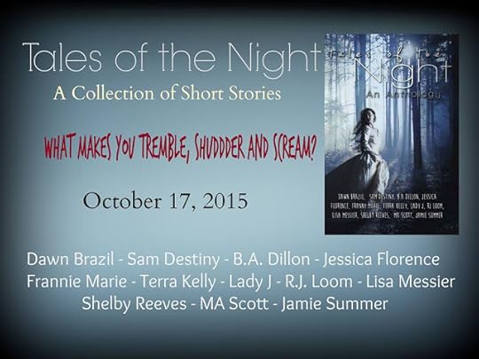 Title: Tales of the Night: A Collection of Short StoriesAuthor: Dawn Brazil, Sam Destiny, B.A. Dillon, Jessica Florence, Franny Marie, Terra Kelly, LadyJ, RJ Loom, Lisa Messier, Shelby Reeves, MA Scott, and Jamie Summer Release Date: October 17, 2015
