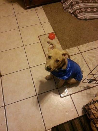 to show her a little extra love today, I took her for a long ride, then a walk in the park. It’s like spring here right now. She got to pick out her own toy at PetSmart, as if she needs something else to destroy. Then, we came home and I played ball with her upstairs – well, actually she ran up and down the stairs while I stood at the bottom and threw her ball, but she’s perfectly fine with that arrangement. After dinner, she went outside to chase possums, another of her favorite activities, then came back in for her bedtime treats. She’s now sleeping soundly in her bed.