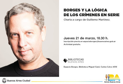 ¿Qué tienen en común "La muerte y la brújula" y "Pierre Menard, autor del Quijote"?El jueves 21 de marzo, a las 18:30 hs. en la biblioteca Cané (Carlos Calvo 4319): charla sobre Borges y la lógica de los crímenes en serie.