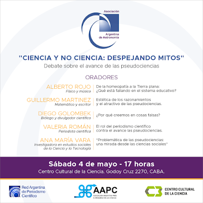Sábado 4 de mayo a las 17 hs. debate sobre el avance de las pseudociencias: Charla sobre la estética de los razonamientos y el atractivo de las Pseudociencias en Centro Cultural de la Ciencia.