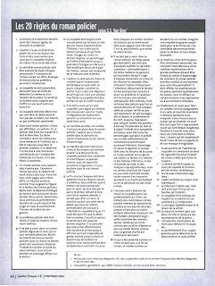 Règles trouvées par l’élève Ludovic LELONG pendant ces recherches. Cet article est diffusé et préservé par Erudit. Il s’agit des 20 règles communes du polard selon S.S. Van Dine.