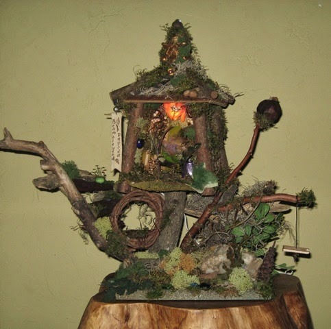 I love art of any kind. I paint (oils) and have even had some of my work in a gallery here in Houston. But probably everyone’s favorite art of mine is my fairy houses. I design, construct, and sell miniscule abodes for homeless fairies. Which equates to just about the coolest nightlight you’ve ever seen. I haven’t done any in a while, but here’s a picture so you get the idea.