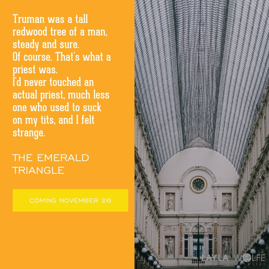 I just thought I'd share some new teasers with you for The Emerald Triangle, my new standalone sexy priest book coming November 26.