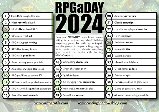 Lost the thread of RPGaDay, yet again. Time has moved on and now social media is all about moving from, you know, that place, to somewhere else. In case it all burns down in a fit of pique.