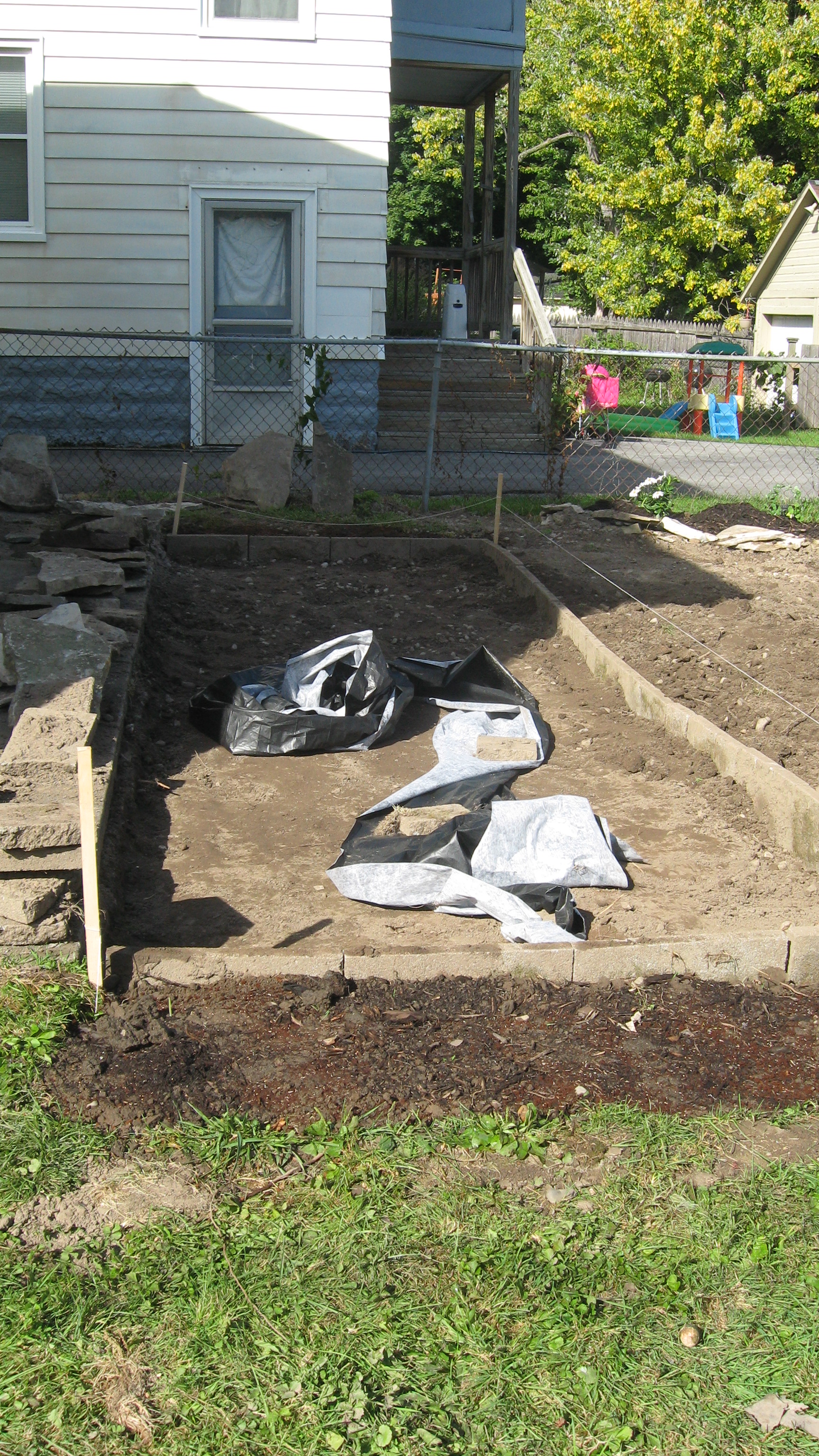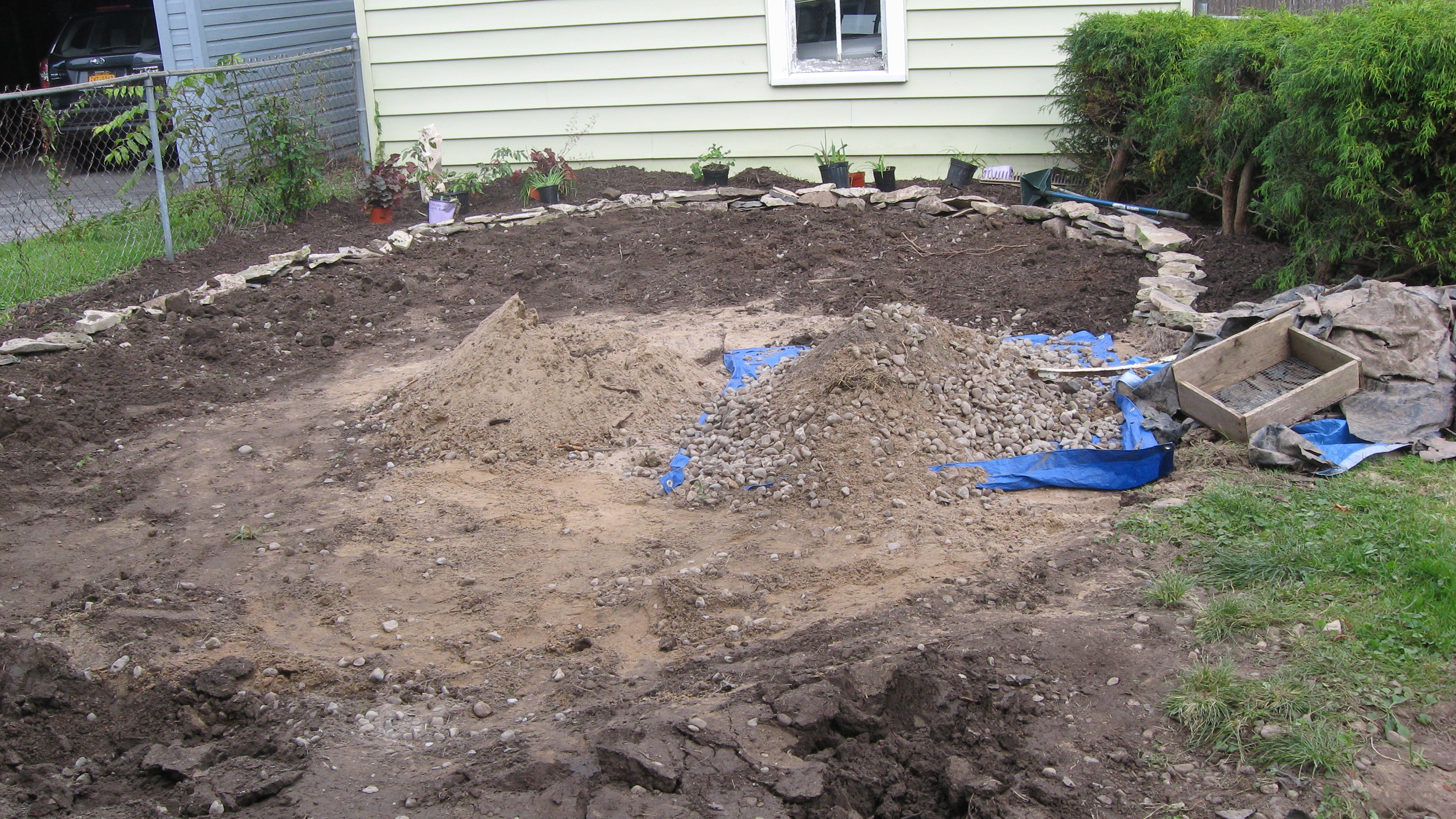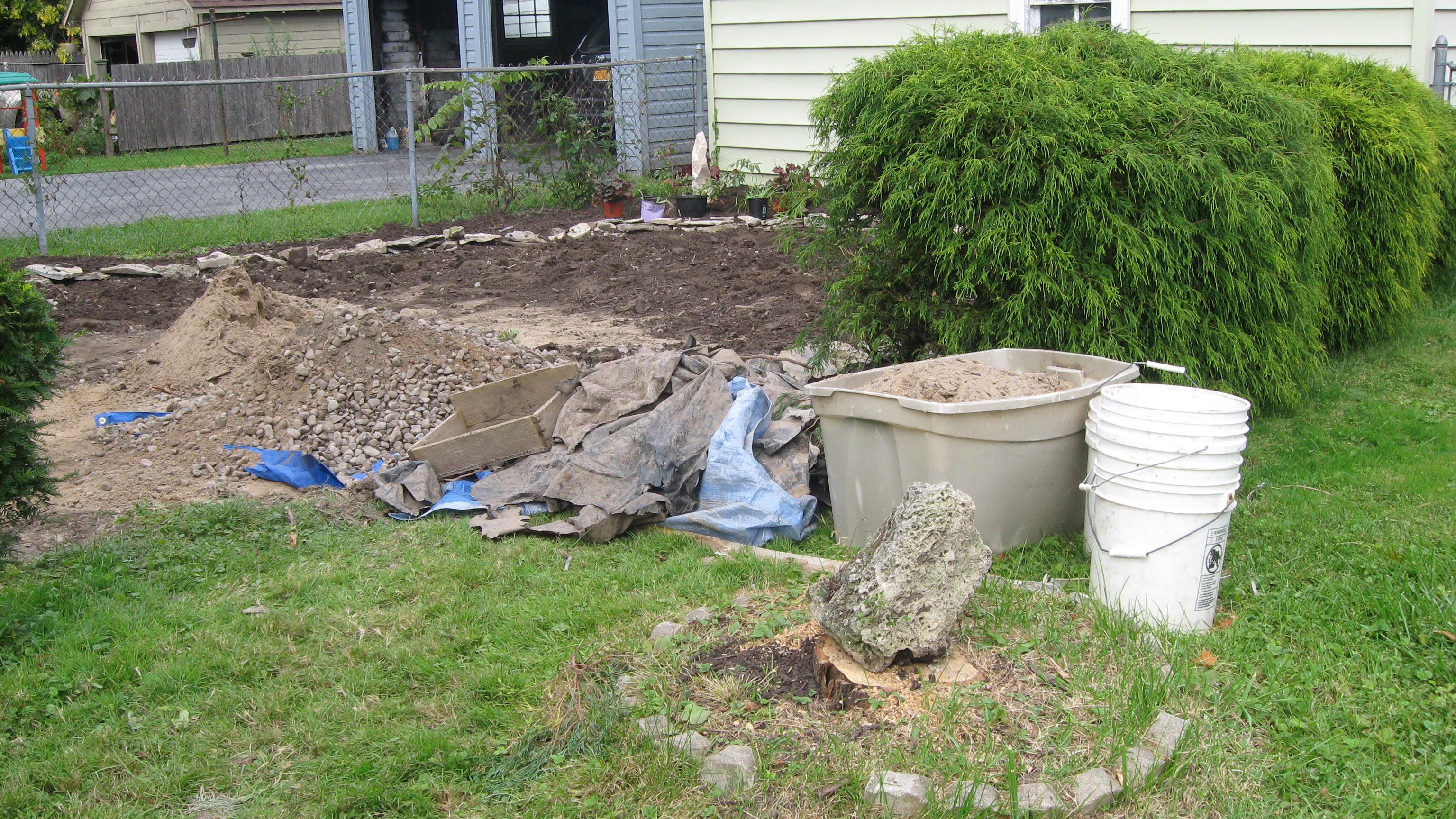 The first week or so, work on the transformation of my back yard from ancient-above-ground-pool-to-sanctuary progressed steadily.