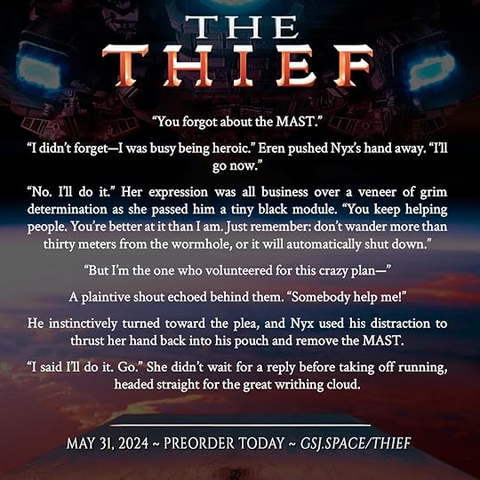 …In which Eren follows a hunch one afternoon and wanders off, lands 135 megaparsecs from Concord space, meets a perplexing species as old as the Anadens, and gets tangled up in a nefarious murder mystery - and that’s just the first day. Bar fights and explosions are also rumored to occur, because where Eren wanders, chaos usually follows. Mr. Jennsen, first reader and relentless truth teller, has proclaimed The Thief “the most fun book” I’ve ever written. Considering that was my goal, I’m pretty stoked to see if you all agree with him.