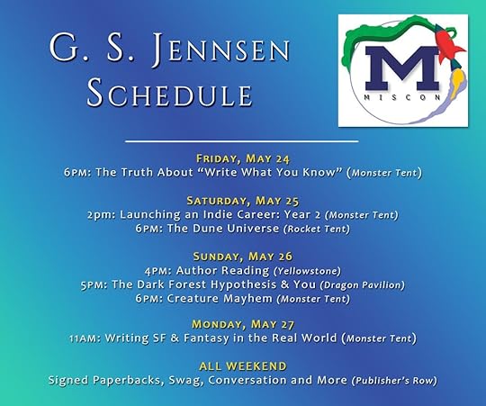 Do you live in the Inland Northwest or Western Montana? Come to MisCon next weekend in Missoula for 4 days of SFF panels, books, games, cosplay, shopping and all-around fun. Here's my schedule for the weekend - come hang with me!