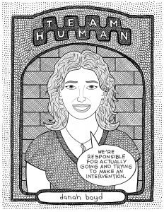 Playing for Team Human today, technology and social media scholar, founder of Data & Society Research Institute, and author of It’s Complicated: The Social Lives of Networked Teens, danah boyd.
