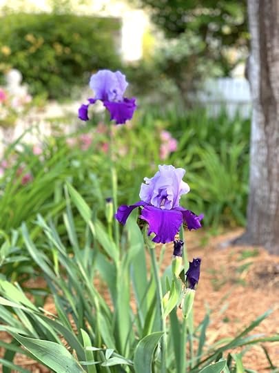 My grandmother’s purple iris decided to put on a show this year in the front yard, right near the tree swing where the kids have spent hours since school and playdates with friends came to a halt.