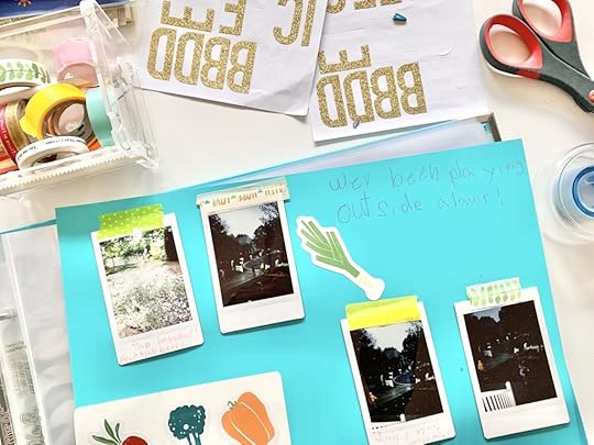 — Gather easy materials—perhaps things you already have! You can use a binder and regular printer paper (with page protector sleeves or just loose!), a college-rule notebook (decorate the cover!), a mini handmade “book” with craft paper and a stapler, or a regular scrapbook album and sleeves. Use whatever is easy and accessible! You’ll think less over time about how perfectly crafted it is and more about how meaningful it is.