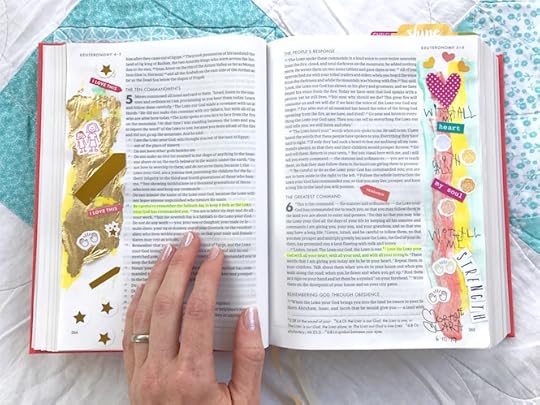 - We use the She Reads Truth Bible, which I LOVE. It’s beautifully crafted, thoughtfully designed, and it has great wide margins on pure white paper–a great canvas for Bible journaling!