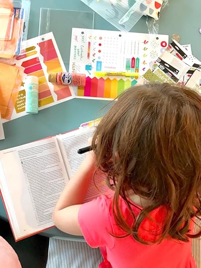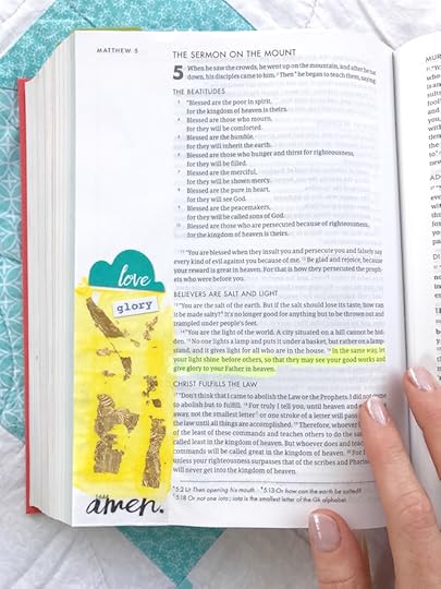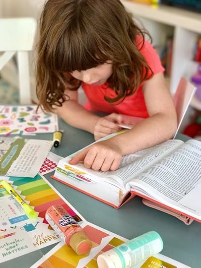 – We start simple. We pick a verse and highlight it. I ask Grace if there’s a verse she wants to do (she might recall a song she learned in Bible class at church or a story we read at bedtime that week) or sometimes I pick one that I highlighted from my own Bible reading that morning.