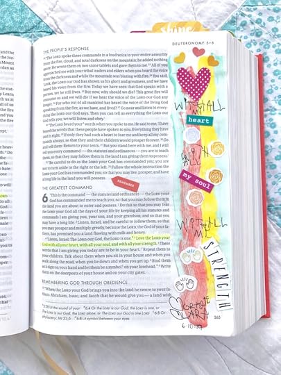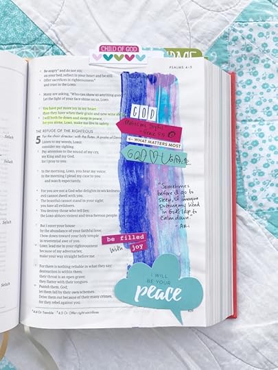 Bible journaling with Grace has helped us have meaningful conversations about the Bible while engaging her full attention with a creative activity. One of the best benefits for me, besides having good conversation about God and closeness with Grace, is letting a smaller portion of scripture really sink in. I end up memorizing most of what we journal.
