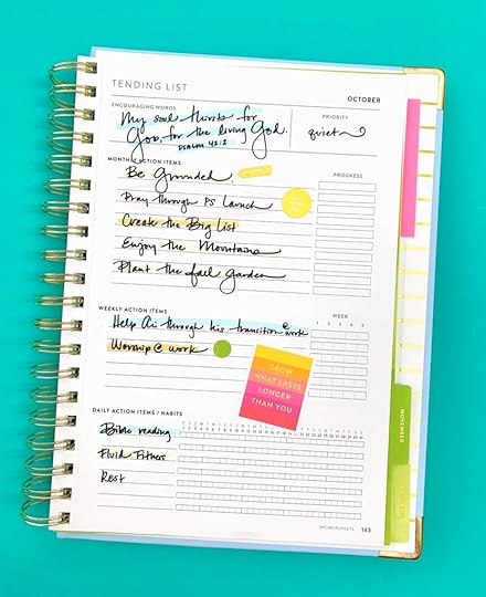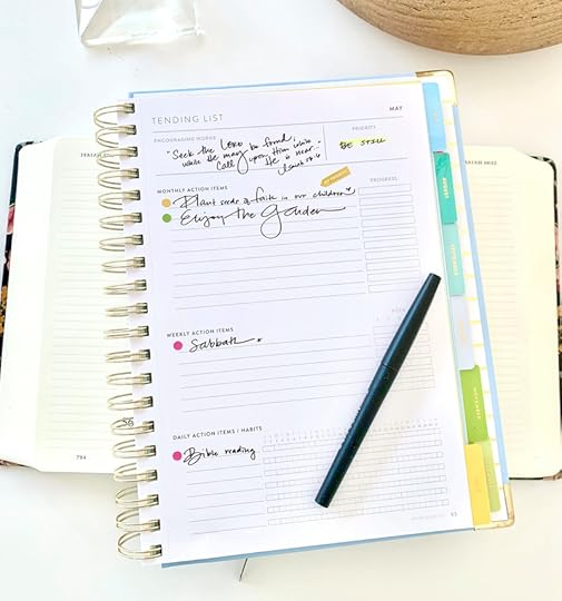 My focus this month is space between things—words suggested to me by a trusted mentor. Allow space between things. Enjoy that space between things. Notice the living that happens in the space between things. I tend to go from one important thing to the next without margin to process. I’m practicing slowing my pace a bit this month—with some literal space on my Tending List to remind me.