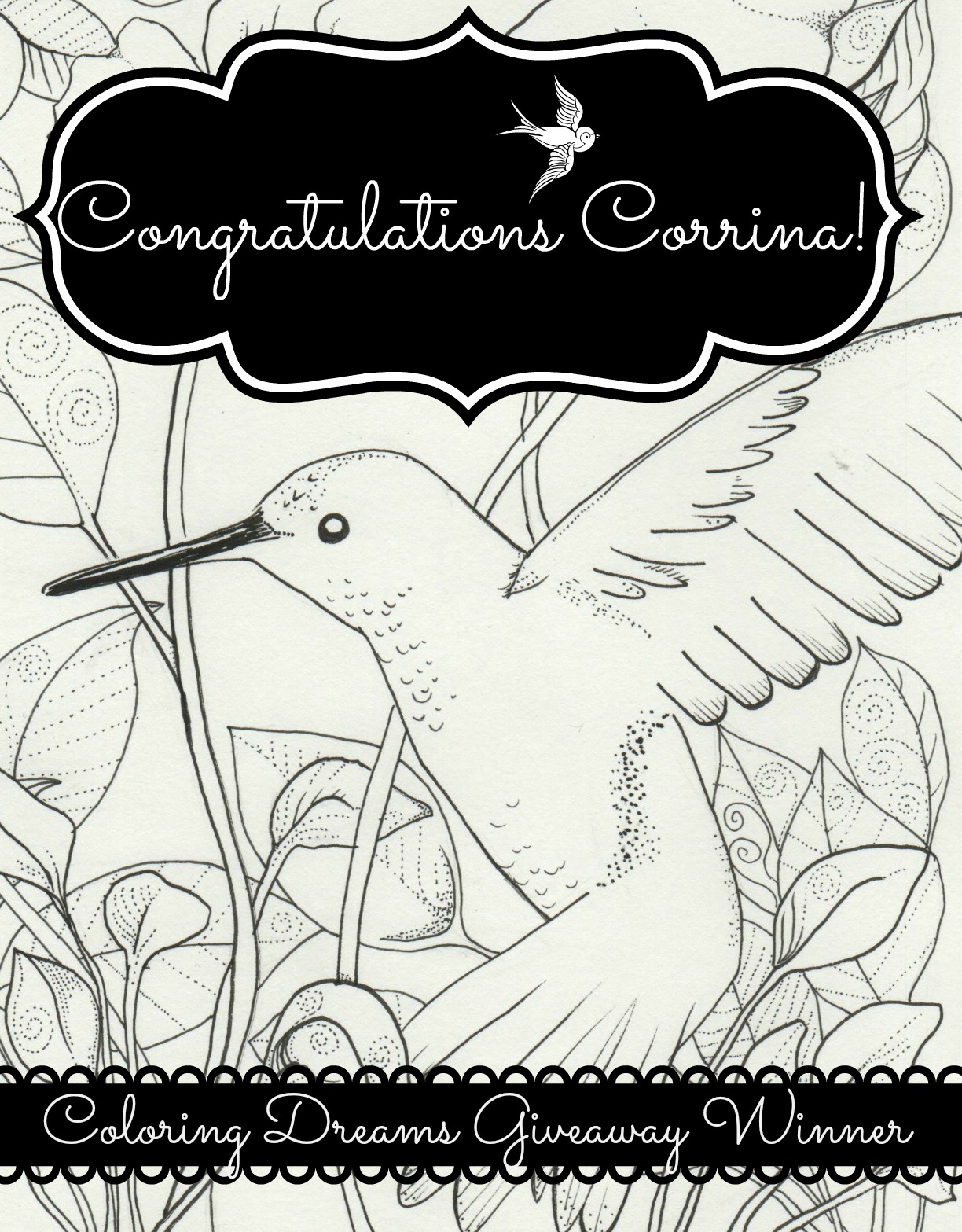 Congratulations CORRINA LORRAINE! Winner of the Coloring Dreams Giveaway!