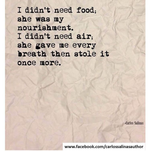Creative writing for the mind, spirit, and heart. Share if you like my work just please credit me in any reposts, thanks for reading! (Get my books on Amazon.com or my eBooks on Smashwords.com) :) Find more at www.goodreads.com/carlossalinas