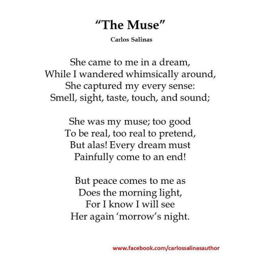 Creative writing for the mind, spirit, and heart. Share if you like my work just please credit me in any reposts, thanks for reading! (Get my books on Amazon.com or my eBooks on Smashwords.com) :) Find more at www.goodreads.com/carlossalinas