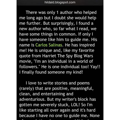 Share if you like my work just please credit me in any reposts, thanks for reading! (Get my books on Amazon.com or my eBooks on Smashwords.com) :) Find more at www.goodreads.com/carlossalinas